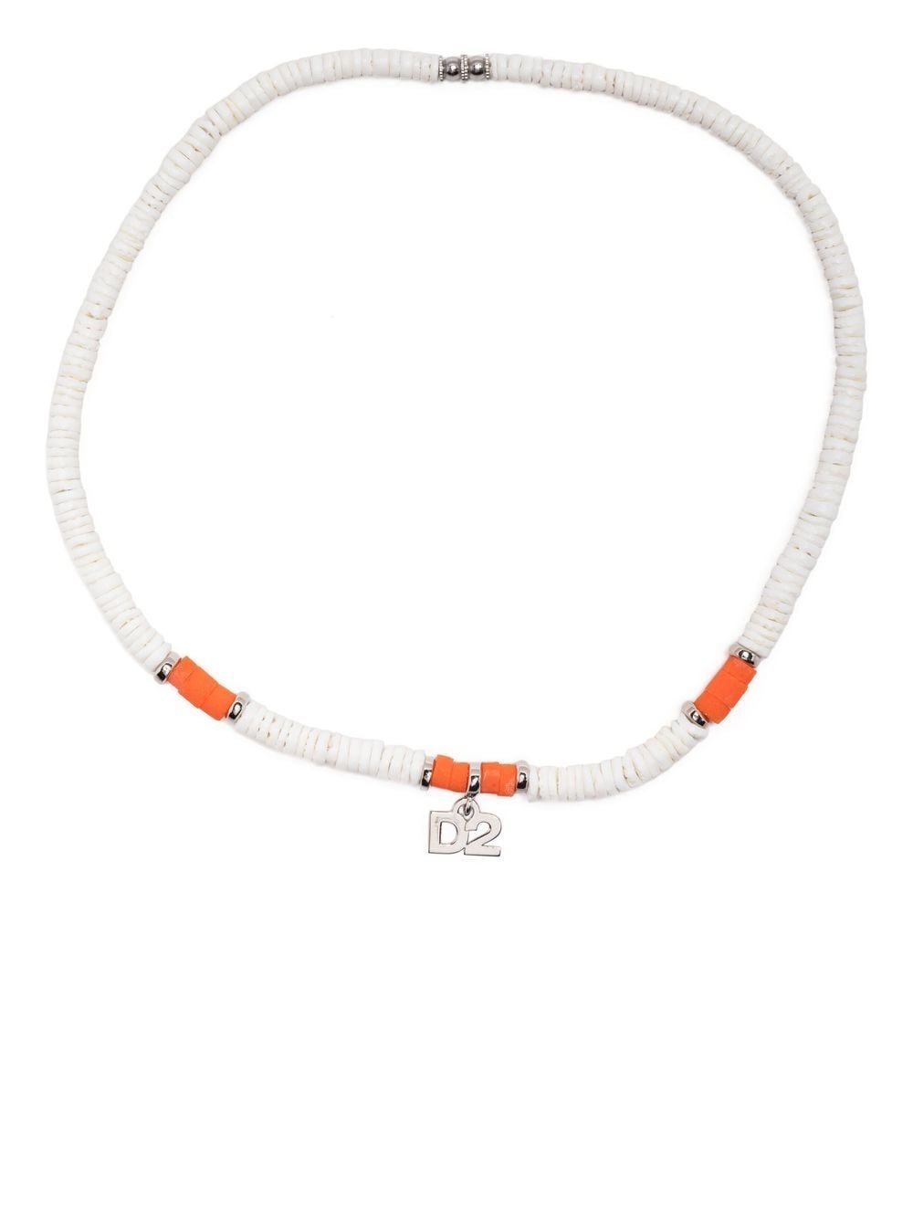 logo-charm beaded necklace white/orange bead detailing logo pendant barrel-clasp fastening Made in Italy SIZE & FIT Model measurements Height 5 ft 11 in(1.8 m) Bust/Chest 28.34 in(72 cm) Hips 35.43 in(90 cm) Waist 23.62 in(60 cm) Measurement CIRCUMFERENCE 18.89 in(48 cm) PENDANT LENGTH 0.51 in(1.3 cm) PENDANT WIDTH 0.62 in(1.6 cm) WIDTH 0.19 in(0.5 cm)