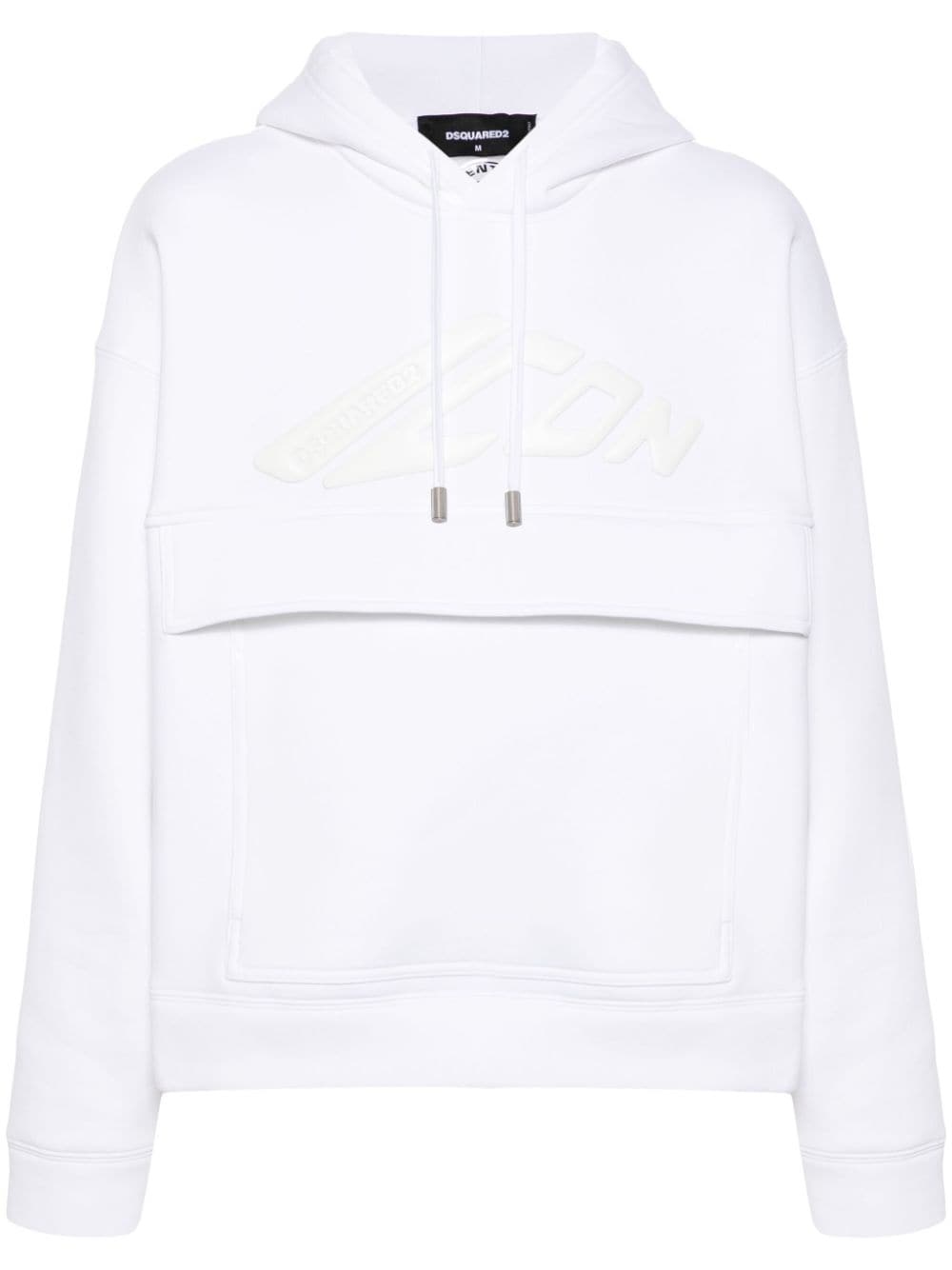 logo-debossed hoodie Highlights - White - Cotton blend - Jersey texture - Drawstring hood - Applique lettering - Debossed logo to the front - Front zip-fastening pocket - Front pouch pocket - Drop shoulder - Long sleeves - Ribbed cuffs and hem - Fleece lining Made in Italy Composition Outer: Cotton 66%, Polyester 34% Lining: Cotton 100% SIZE & FIT Model measurements Height 6 ft 1 in(1.86 m) Bust/Chest 37.4 in(95 cm) Hips 36.22 in(92 cm) Waist 29.52 in(75 cm) FittingInformation Designed to be unstructured, offering a loose fit throughout The ribbed hem offers a close, comfortable fit Made from a midweight non-stretch fabric, this piece offers minimal elasticity when worn This piece fits true to size – take your usual size