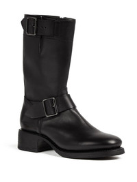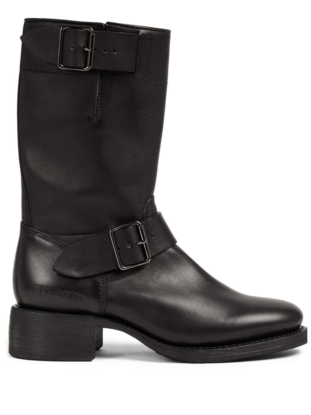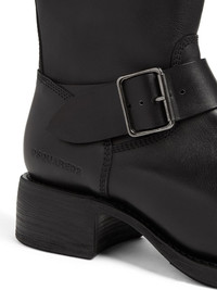 logo-debossed leather boots Highlights - Black - Calf leather - Decorative buckle detail - Debossed logo to the side - Round toe - Side zip fastening - Branded insole - Low block heel - Rubber sole Made in Italy Composition Leather 100%
