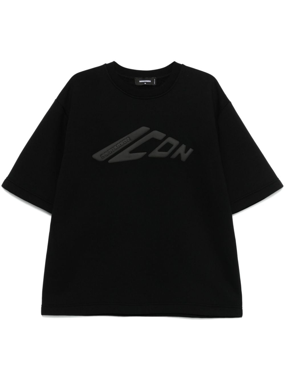 logo-debossed T-shirt Highlights - Black - Cotton blend - Jersey texture - Crew neck - Applique detailing - Debossed logo to the front - Drop shoulder - Short sleeves - Straight hem Made in Italy Composition Cotton 66%, Polyester 34%