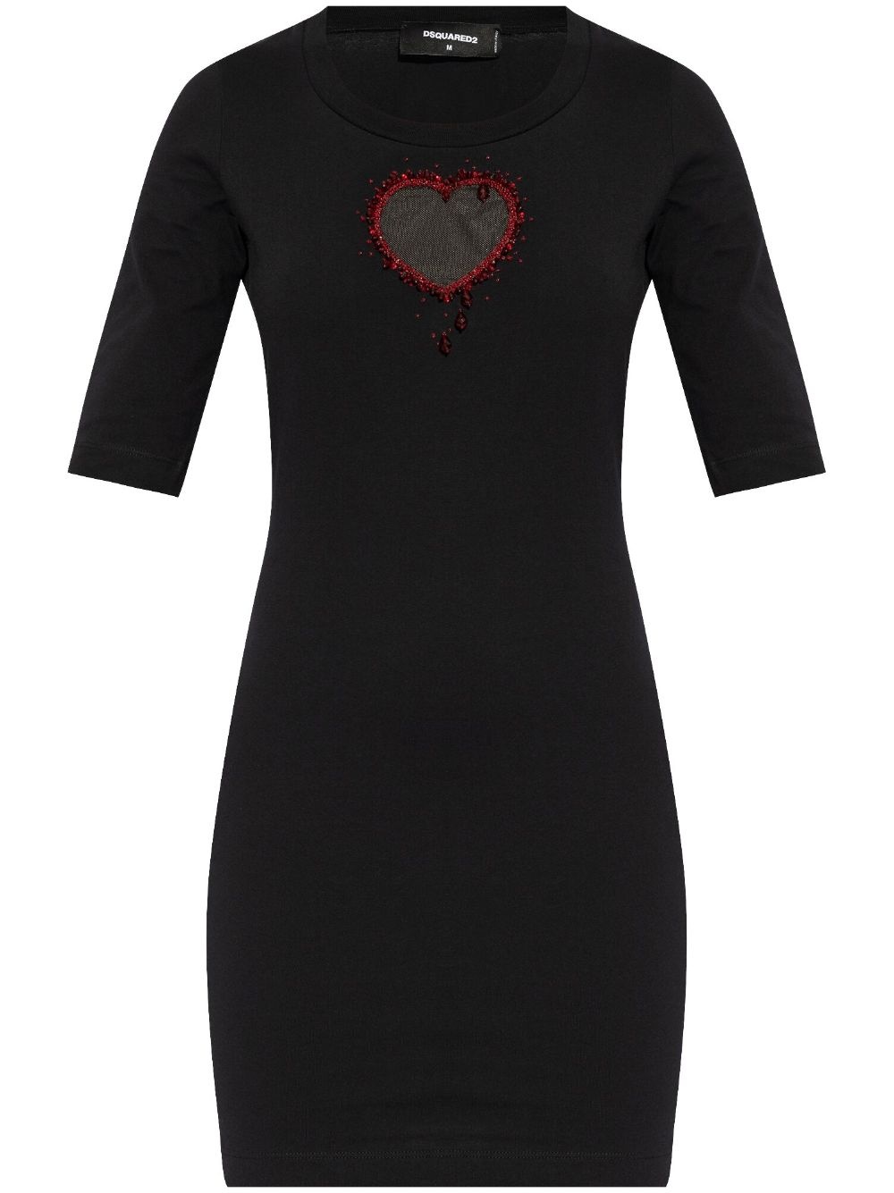 logo-embellished cotton mini dress Highlights - Black - Cotton - Logo embellishment - Heart motif - Sequin embellishment - Round neck - Short sleeves - Straight hem - Thigh-length - Pull-on style Made in Italy Composition Cotton 100%