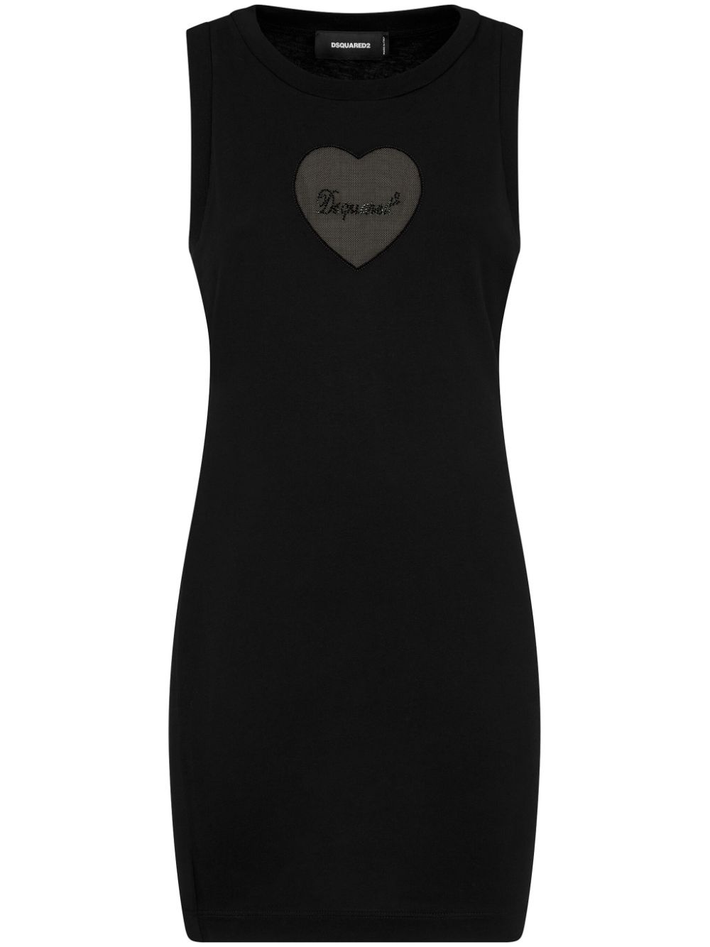 logo-embellished cotton minidress Highlights - Black - Cotton - Logo embellishment - Sequin embellishment - Heart motif - Crew neck - Sleeveless - Straight hem - Thigh-length Made in Italy Composition Cotton 100%, Polyamide 100% Washing instructions Read Manufacturer Guidelines