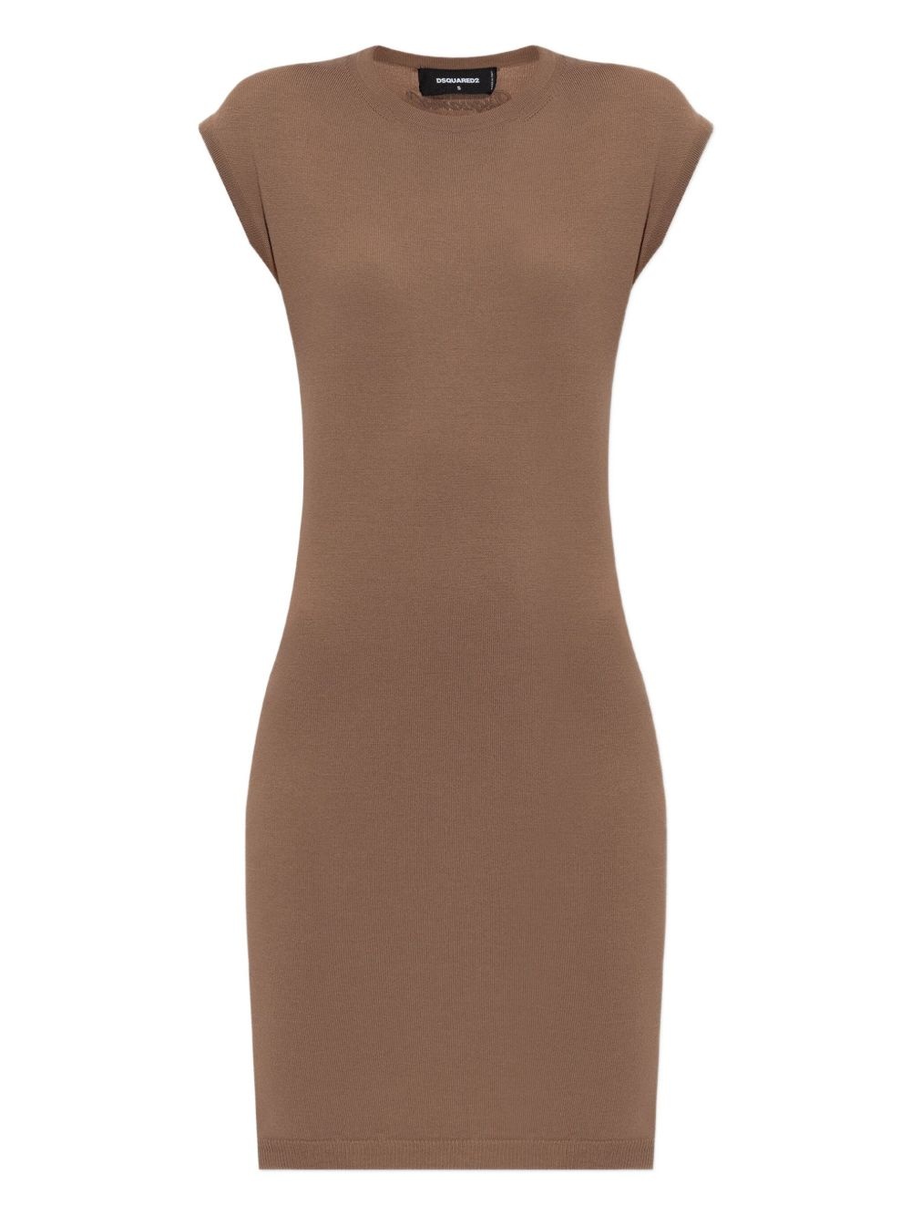logo-embroidered bodycon dress Highlights - Brown - Cap sleeves - Crew neckline - Fitted design - Knee-length hem Made in Italy Composition Wool 86%, Polyamide 14% Washing instructions Read Manufacturer Guidelines