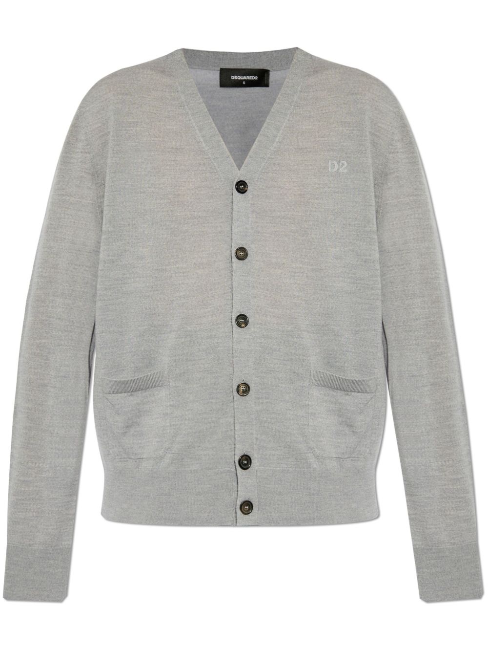 logo-embroidered cardigan Highlights - Beluga grey - Front button fastening - Two front patch pockets - V-neck - Long sleeves Imported Composition Virgin Wool 100%