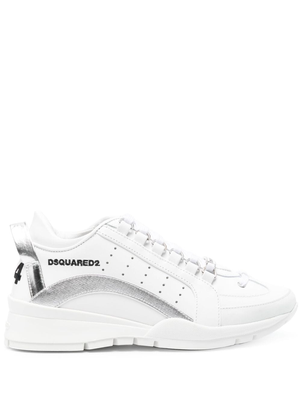 logo-embroidered leather sneakers Highlights - White/silver-tone - Panelled design - Round toe - Silver-tone logo shoelace tag - Embroidered logo to the tongue and side - Perforated detailing - Pull-tab at the heel - Padded ankle - Branded leather insole - Rubber sole - Front lace-up fastening Made in Italy Composition Leather 100% SIZE & FIT Measurement HEEL 1.77 in(4.5 cm) Sole height 0.98 in(2.5 cm)