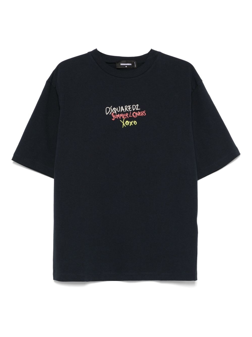 logo-embroidered T-shirt Highlights - Navy blue - Crew neck - Short sleeves - Straight hem Made in Italy Composition Cotton 100% SIZE & FIT Model measurements Height 6 ft 2 in(1.87 m) Bust/Chest 37 in(94 cm) Hips 33.85 in(86 cm) Waist 27.95 in(71 cm) FittingInformation Designed to be unstructured, offering a loose fit throughout Made from a midweight non-stretch fabric, this piece offers minimal elasticity when worn