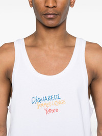 logo-embroidered tank top Highlights - White - Scoop neck - Sleeveless - Straight hem Made in Italy Composition Cotton 100% SIZE & FIT Model measurements Height 6 ft 2 in(1.87 m) Bust/Chest 37 in(94 cm) Hips 33.85 in(86 cm) Waist 27.95 in(71 cm) FittingInformation Designed for an oversized fit, offering additional room throughout Made from a midweight non-stretch fabric, this piece offers minimal elasticity when worn