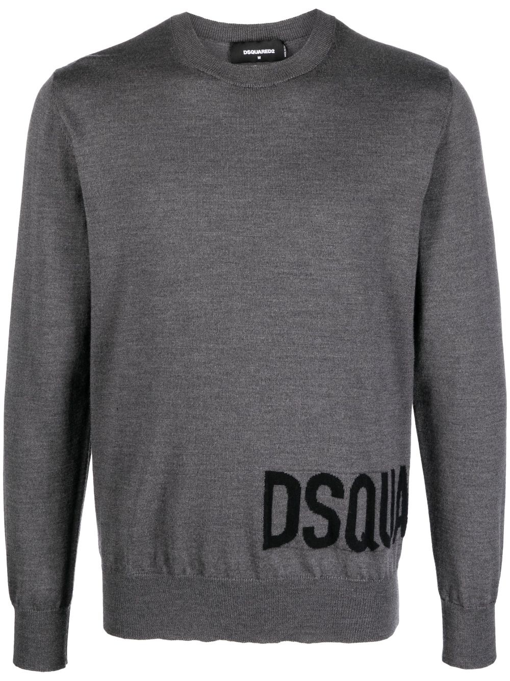 logo-intarsia crew-neck sweater Highlights - Dark grey/black - Virgin wool - Knitted construction - Crew neck - Long sleeves - Intarsia-knit logo - Ribbed cuffs and hem - Straight hem Made in Italy Composition Virgin Wool 100% SIZE & FIT Model measurements Height 6 ft 2 in(1.87 m) Bust/Chest 36.41 in(92.5 cm) Hips 35.43 in(90 cm) Waist 29.52 in(75 cm) FittingInformation Designed for a relaxed fit, this piece allows for comfort and movement when worn Made with a midweight knit, this piece offers some stretch This piece fits true to size – take your usual size