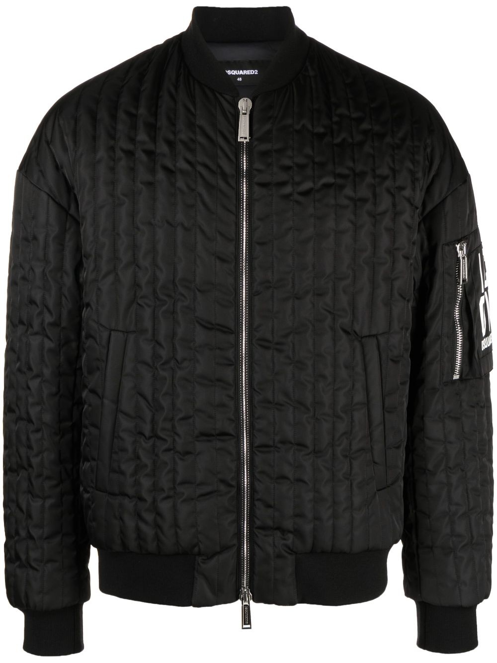 logo-patch bomber jacket Highlights - Black - Padded design - Logo patch at the sleeve - Baseball collar - Front zip fastening - Drop shoulder - Long sleeves - Sleeve zip pocket - Ribbed cuffs and hem Made in Italy Composition Outer: Polyamide 100% Lining: Polyamide 100%, Polyester 100% SIZE & FIT Model measurements Height 6 ft 2 in(1.87 m) Bust/Chest 36.41 in(92.5 cm) Hips 37 in(94 cm) Waist 29.52 in(75 cm) FittingInformation Designed for a relaxed fit, this piece allows for comfort and movement when worn The ribbed hem offers a close, comfortable fit Made from a midweight non-stretch fabric This piece fits true to size – take your usual size