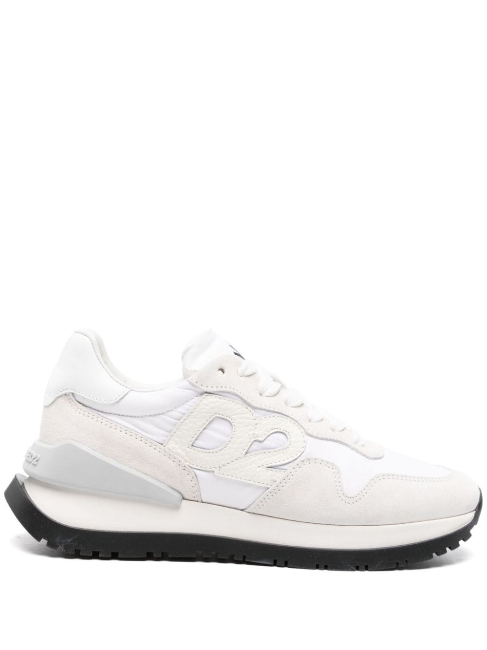 logo-patch leather lace-up sneakers Highlights - White - Calf leather - Suede panels - Panelled design - Leaf print - Logo-print tongue - Logo patch to the side - Embossed logo to the rear - Contrasting heel counter - Almond toe - Front lace-up fastening - Branded insole - Contrasting rubber sole Made in Italy Composition Leather 100% SIZE & FIT Measurement HEEL 1.96 in(5 cm) Sole height 0.98 in(2.5 cm)