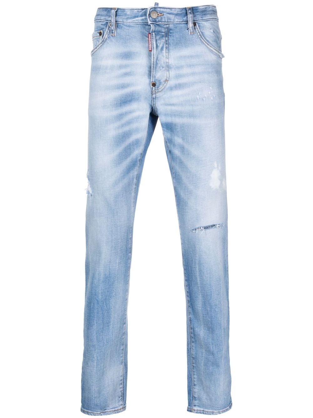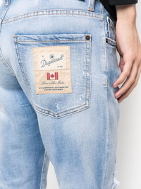 logo-patch tapered-leg jeans Highlights - Light blue - Stretch-cotton - Ripped detailing - Logo patch to the rear - Concealed fly and button fastening - Classic five pockets - Belt loops - Tapered leg - Straight hem Made in Italy Composition Cotton 99%, Elastane 1% SIZE & FIT Model measurements Height 6 ft 1 in(1.86 m) Bust/Chest 36.61 in(93 cm) Hips 37 in(94 cm) Waist 28.74 in(73 cm) FittingInformation Designed for a slim fit, these jeans offer a comfortable fit that sits just away from the leg Constructed from stretch denim, this piece offers a stretch fit with durability This piece fits true to size – take your usual size Washing instructions Machine Wash