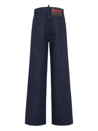 logo-patch wide-leg jeans Highlights - Navy blue - Concealed fly and button fastening - Belt loops - Two side slash pockets - Two rear patch pockets Imported Composition Cotton 99%, Elastane 1%