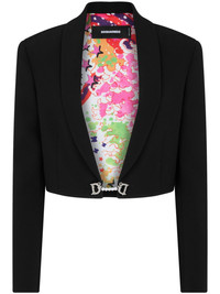 logo-plaque cropped blazer Highlights - Black - Silver-tone logo plaque - Shawl lapels - V-neck - Open front - Long sleeves - Cropped Made In Italy Composition Lining: Polyester 100% Outer: Polyester 100%, Polyurethane 100% Washing instructions Read Manufacturer Guidelines