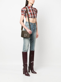 logo-plaque leather crossbody bag Dsquared2's playful charm is captured in the small, structured silhouette of this olive-green crossbody bag. It's elevated by a polished silver-tone logo plaque, nodding to the label's love of bold branding. Highlights - Olive green - Calf leather - Logo plaque - Silver-tone hardware - Tonal stitching - Adjustable shoulder strap - Foldover top with magnetic fastening - Partitioned compartment - Internal logo patch Made in Italy Composition Outer: Calf Leather 100% SIZE & FIT Model measurements Height 5 ft 10 in(1.78 m) Bust/Chest 31.49 in(80 cm) Hips 36.22 in(92 cm) Waist 25.59 in(65 cm) Measurement DEPTH 1.96 in(5 cm) HEIGHT 5.51 in(14 cm) STRAP 22.04 in(56 cm) WIDTH 7.87 in(20 cm)