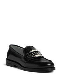 logo-plaque leather loafers Highlights - Jet black - Leather - Smooth grain - Tonal stitching - Silver-tone logo plaque - Debossed logo to the side - Almond toe - Slip-on style - Branded leather insole - Leather sole Made in Italy Composition Lining: Lamb Skin 100% Outer: Calf Leather 100% Sole: Leather 100%