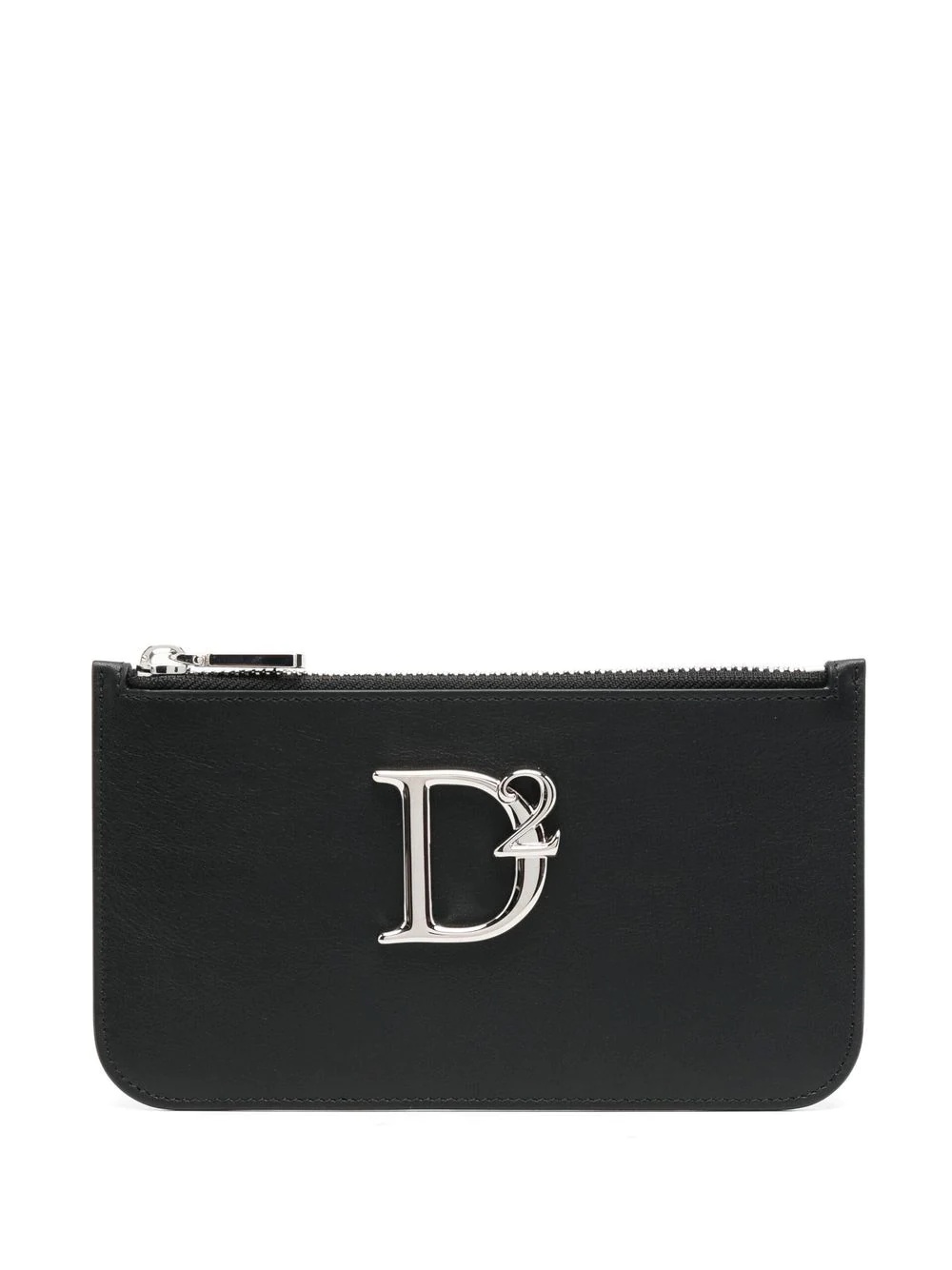 logo-plaque leather purse jet black calf leather grained texture silver-tone logo plaque top zip fastening main compartment Made in Italy Composition Outer: Calf Leather 100% SIZE & FIT Measurement LENGTH 3.93 in(10 cm) WIDTH 7.08 in(18 cm)