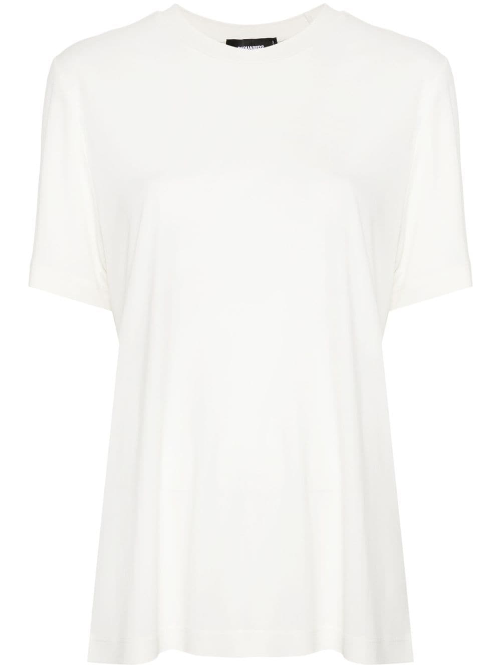 logo-plaque T-shirt Highlights - White - Soft jersey - Crew neck - Short sleeves - Chain-link detailing - Silver-tone logo plaque - Straight hem Made in Italy Composition Viscose 100% SIZE & FIT Model measurements Height 5 ft 10 in(1.77 m) Bust/Chest 29.92 in(76 cm) Hips 34.25 in(87 cm) Waist 23.62 in(60 cm) FittingInformation Designed for a relaxed fit, this piece allows for comfort and movement when worn Made from a midweight non-stretch fabric, this piece offers minimal elasticity when worn