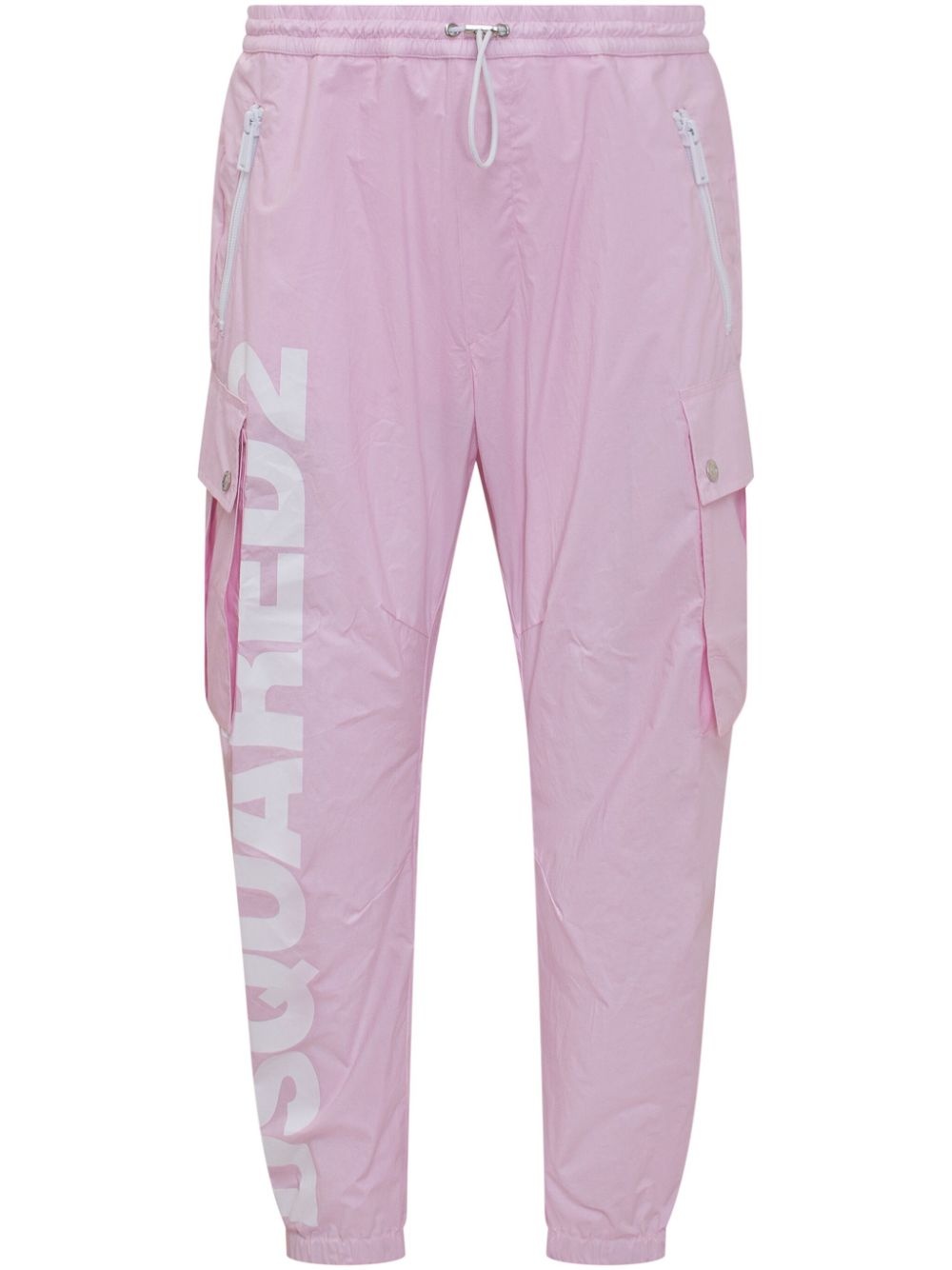 logo-print cargo trousers Highlights - Light pink - Elasticated drawstring waistband - Two side zip-fastening pockets - Two side cargo pockets - Two rear welt pockets Made in Italy Composition Cotton 100%