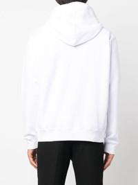 logo-print cotton hoodie Highlights - Optical white - Cotton - Logo print to the front - Drawstring hood - Long sleeves - Ribbed cuffs and hem - Straight hem Made in Italy Composition Cotton 100% SIZE & FIT Model measurements Height 6 ft 2 in(1.89 m) Bust/Chest 37.79 in(96 cm) Hips 37 in(94 cm) Waist 29.92 in(76 cm) FittingInformation Designed for a relaxed fit, this piece allows for comfort and movement when worn Made from a midweight non-stretch fabric, this piece offers minimal elasticity when worn This piece fits true to size – take your usual size Washing instructions Machine Wash