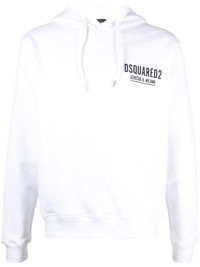 logo-print cotton hoodie Crafted from cotton, this hoodie from Dsquared2 boasts a logo print at the chest alongside the brand's Milanese headquarters, Ceresio 9. The contrasting branding pops, giving the casual style a signature finish. Imported Composition Cotton 100% SIZE & FIT Model measurements Height 6 ft 2 in(1.87 m) Bust/Chest 36.41 in(92.5 cm) Hips 37 in(94 cm) Waist 29.52 in(75 cm) Measurement CHEST 43.3 in(110 cm) SLEEVE LENGTH 24.4 in(62 cm) FittingInformation Designed to be unstructured, offering a loose fit throughout Made from a midweight non-stretch fabric, this piece offers minimal elasticity when worn This piece fits true to size – take your usual size Washing instructions Machine Wash