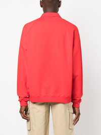 logo-print cotton sweatshirt Highlights - Bright red - Cotton - Logo print to the front - Text print - Polo collar - Short front zip fastening - Long sleeves - Elasticated cuffs - Straight hem Made in Italy Composition Cotton 100% SIZE & FIT Model measurements Height 6 ft 2 in(1.88 m) Bust/Chest 36.61 in(93 cm) Hips 35.82 in(91 cm) Waist 27.95 in(71 cm) FittingInformation Designed to be unstructured, offering a loose fit throughout Made from a midweight non-stretch fabric, this piece offers minimal elasticity when worn This piece fits true to size – take your usual size