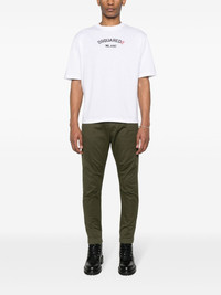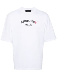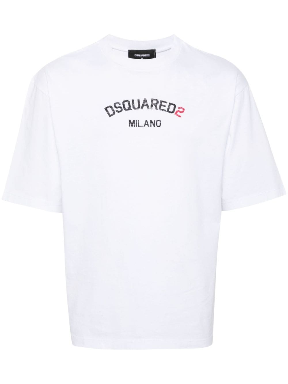 logo-print cotton T-shirt This crisp white T-shirt from Dsquared2 is simply decorated with a stamp-like logo print at the chest in a contrasting red and black palette. Highlights - White - Cotton - Jersey texture - Logo print to the front - Crew neck - Short sleeves - Straight hem Imported Composition Cotton 100% SIZE & FIT Model measurements Height 6 ft 2 in(1.87 m) Bust/Chest 37 in(94 cm) Hips 33.85 in(86 cm) Waist 27.95 in(71 cm) FittingInformation Designed for a relaxed fit, this piece allows for comfort and movement when worn Made from a midweight non-stretch fabric, this piece offers minimal elasticity when worn This piece fits true to size – take your usual size Washing instructions Machine Wash