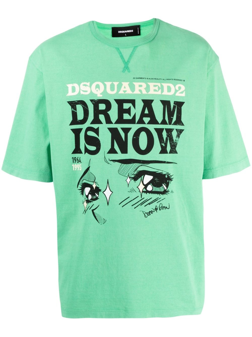 logo-print cotton T-shirt Highlights - Green - Cotton - Jersey texture - Logo print at the chest - Graphic print at the chest - Crew neck - Short sleeves - Straight hem Made in Italy Composition Cotton 100% SIZE & FIT Model measurements Height 6 ft 2 in(1.87 m) Bust/Chest 34.25 in(87 cm) Hips 36.22 in(92 cm) Waist 29.52 in(75 cm) FittingInformation Designed to be unstructured, offering a loose fit throughout Made from a midweight non-stretch fabric, this piece offers minimal elasticity when worn This piece fits true to size – take your usual size