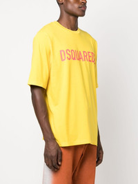 logo-print cotton T-shirt Highlights - Yellow/pink - Cotton - Logo print to the front - Crew neck - Short sleeves - Straight hem Made in Italy Composition Cotton 100% SIZE & FIT Model measurements Height 6 ft 2 in(1.89 m) Bust/Chest 39.76 in(101 cm) Hips 37.4 in(95 cm) Waist 29.92 in(76 cm) FittingInformation Designed to be unstructured, offering a loose fit throughout Made from a midweight non-stretch fabric, this piece offers minimal elasticity when worn This piece fits true to size – take your usual size Washing instructions Machine Wash