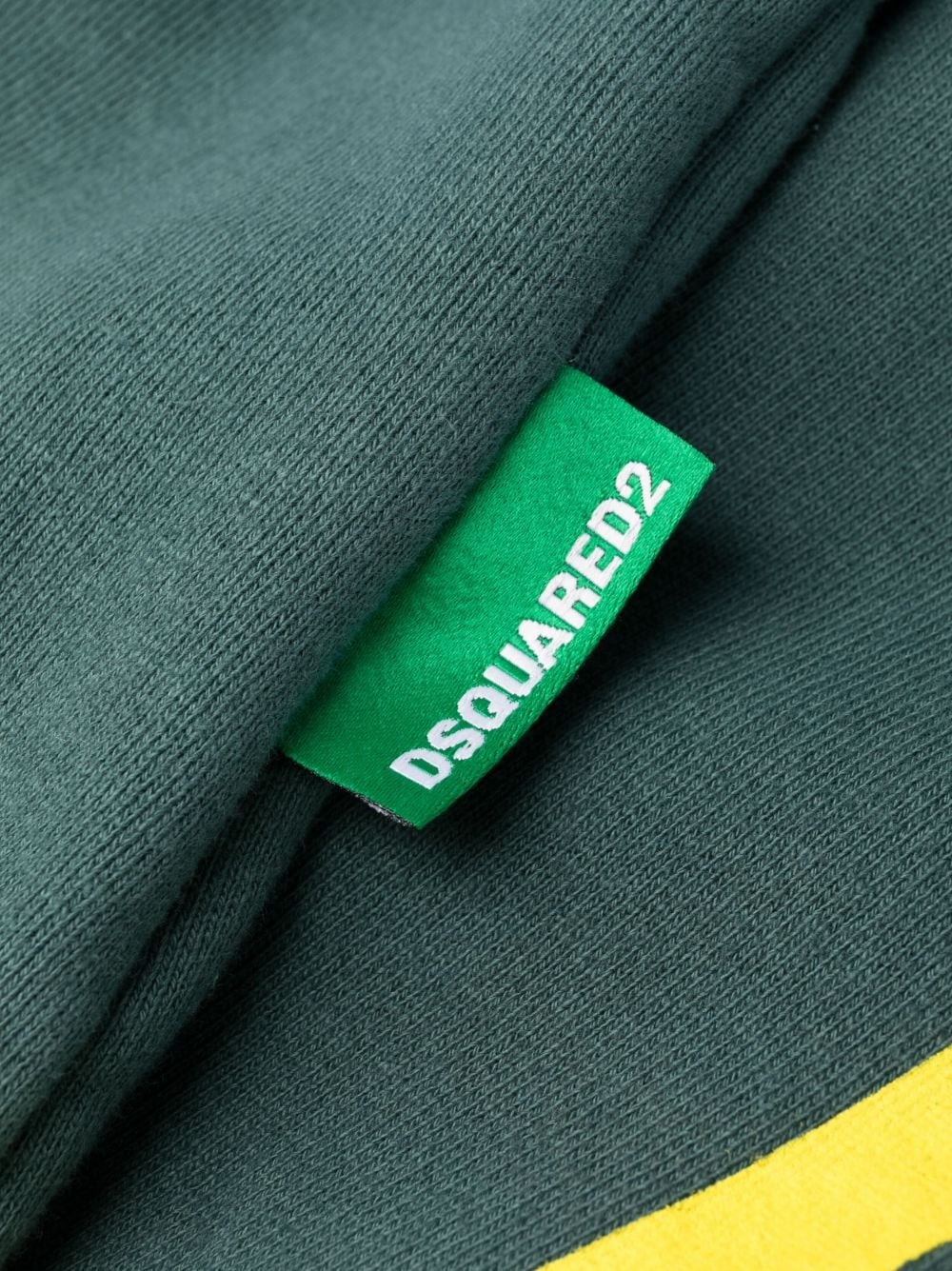 logo-print cotton track pants Cut from soft cotton with a relaxed tapered leg, these green DSquared2 joggers are printed with the brand's lettering in contrasting yellow for an impactful branded finish. Made in Italy Composition Outer: Cotton 100% Lining: Cotton 100% SIZE & FIT Model measurements Height 5 ft 9 in(1.76 m) FittingInformation This piece fits true to size. We recommend you get your regular size Cut for a slim fit Made with a mid-weight fabric