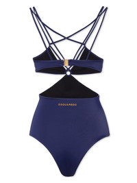 logo-print cut out-detail bodysuit Highlights - Navy blue - Stretch-design - Logo print to the rear - Cut-out detailing - Multi-way straps - Triangle cup - Rear buckle fastening - One-piece design - Be mindful to try on swimwear over your own garments. Made in Italy Composition Polyamide 80%, Elastane 20%