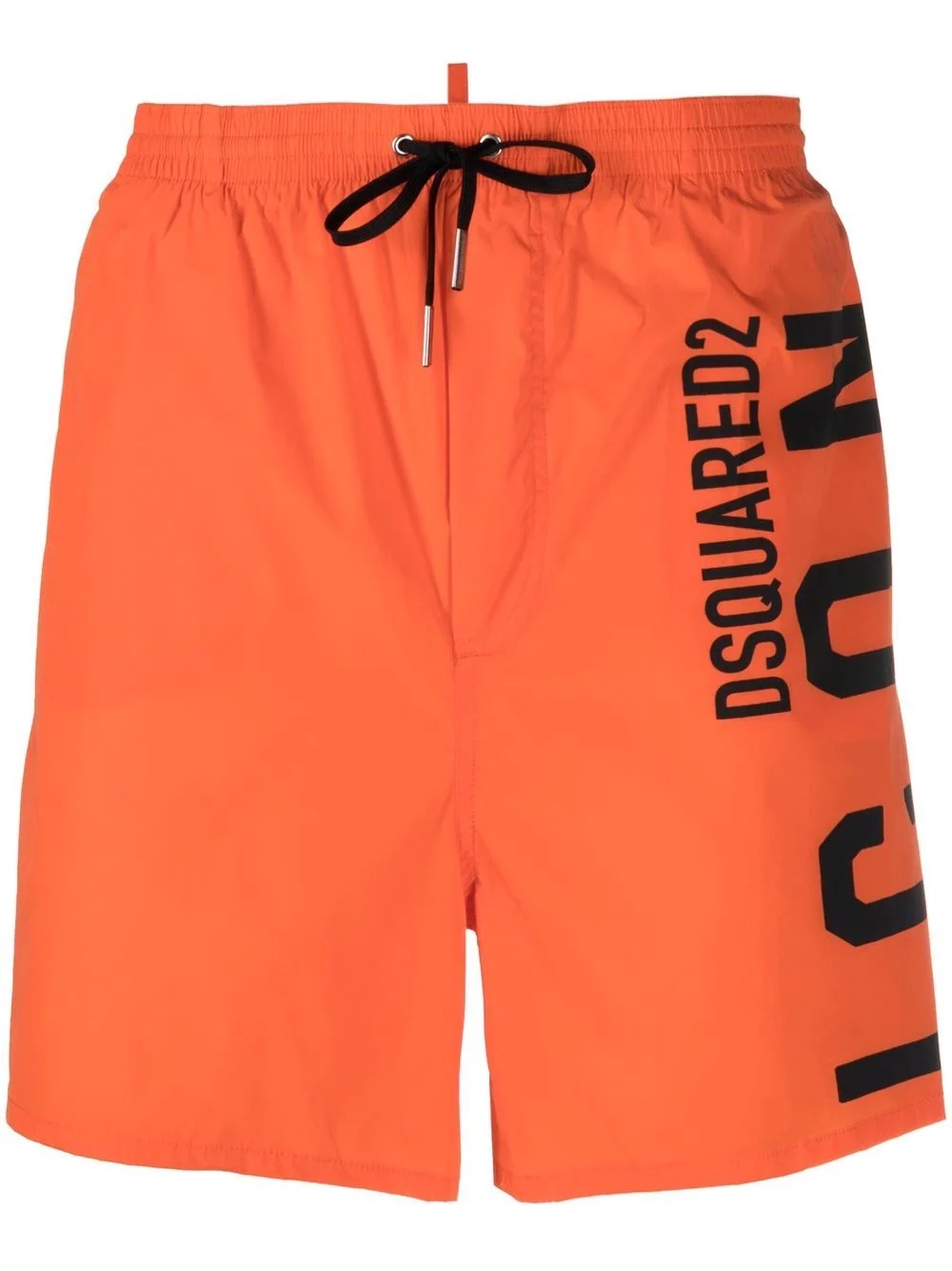 logo-print drawstring swim shorts orange/black logo print to the front elasticated drawstring waistband straight leg knee-length Be mindful to try on swimwear over your own garments. Made in Italy Composition Polyamide 92%, Spandex/Elastane 8% Washing instructions Machine Wash