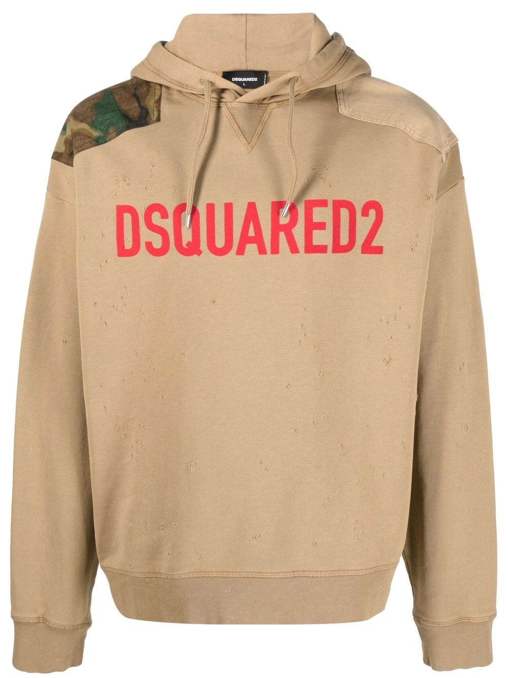 logo-print hoodie Renowned for its casual, laid-back approach to every day, Canadian-born Dsquared2 presents this soft cotton hoodie. Boasting camouflage-print panels at each shoulder, a contrasting logo adorns the chest. Made in Italy Composition Cotton 100% SIZE & FIT Model measurements Height 6 ft 2 in(1.88 m) Bust/Chest 35.03 in(89 cm) Hips 35.82 in(91 cm) Waist 27.95 in(71 cm) FittingInformation This piece fits true to size. We recommend you get your regular size Cut for a relaxed fit Made with a mid-weight fabric Washing instructions Hand Wash
