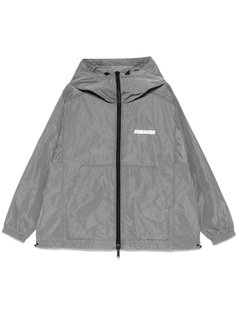 logo-print jacket Highlights - Ash grey - Front two-way zip fastening - Two front pouch pockets - Elasticated cuffs - Drawstring hem Imported Composition Polyester 100% SIZE & FIT Model measurements Height 6 ft 2 in(1.87 m) Bust/Chest 38.97 in(99 cm) Hips 37.99 in(96.5 cm) Waist 29.52 in(75 cm) FittingInformation Designed to be unstructured, offering a loose fit throughout The internal drawstring at the hem allows for fitted preferences Made from a lightweight non-stretch fabric
