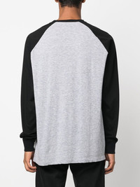 logo-print long-sleeve T-shirt heather grey/black cotton blend logo print at the chest long raglan sleeves crew neck straight hem Made in Italy Composition Cotton 88%, Viscose 12% SIZE & FIT Model measurements Height 6 ft 2 in(1.89 m) Bust/Chest 35.03 in(89 cm) Hips 38.18 in(97 cm) Waist 29.92 in(76 cm) Measurement CHEST 49.6 in(126 cm) SLEEVE LENGTH 28.34 in(72 cm) FittingInformation This piece fits true to size. We recommend you get your regular size Cut for a loose fit Made with a mid-weight fabric Washing instructions Dry Clean Only