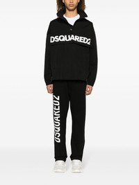 logo-print poplin half-zip jacket Dsquared2's penchant for taking the moniker logo and putting a spin on it is clear with this half-zip jacket. Rendered in black cotton, the front boasts a glitched iteration of the emblem. Highlights - Black/white - Stretch-cotton - Poplin texture - Logo print to the front - High neck - Half front zip fastening - Side zip fastening - Drop shoulder - Long sleeves - Elasticated cuffs - Concealed front zip-fastening pocket - Two side slit pockets - Straight hem Made in Italy Composition Cotton 97%, Spandex/Elastane 3% SIZE & FIT Model measurements Height 6 ft 2 in(1.88 m) Bust/Chest 35.43 in(90 cm) Hips 36.61 in(93 cm) Waist 27.95 in(71 cm) FittingInformation Designed to be unstructured, offering a loose fit throughout Made from a midweight non-stretch fabric This piece fits true to size – take your usual size Washing instructions Machine Wash