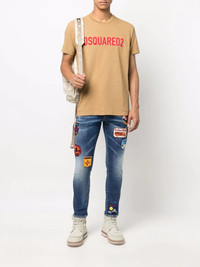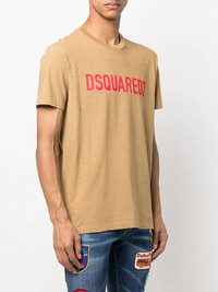 logo-print short-sleeve T-shirt Inspired by the brand's Canadian and Italian roots, Dsquared2 pairs bold iconography with refined construction techniques. Highlighted on this casualwear T-shirt, which is made from soft, opulent materials, the design features a logo print in a contrasting colourway across the front. Highlights - Camel brown - Cotton - Logo print to the front - Round neck - Short sleeves - Straight hem Made in Italy Composition Cotton 100% SIZE & FIT Model measurements Height 6 ft 2 in(1.87 m) Bust/Chest 38.18 in(97 cm) Hips 36.61 in(93 cm) Waist 29.13 in(74 cm) Measurement CHEST 44.09 in(112 cm) SLEEVE LENGTH 8.26 in(21 cm) Shoulder Width 18.11 in(46 cm) Washing instructions Dry Clean Only