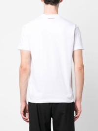 logo-print short-sleeve T-shirt white cotton logo print at the chest round neck short sleeves straight hem Made in Italy Composition Cotton 100% SIZE & FIT Model measurements Height 6 ft 2 in(1.88 m) Bust/Chest 36.61 in(93 cm) Hips 35.82 in(91 cm) Waist 27.95 in(71 cm) Measurement SLEEVE LENGTH 8.26 in(21 cm) FittingInformation This piece fits true to size. We recommend you get your regular size Cut for a relaxed fit Made with a mid-weight fabric Washing instructions Machine Wash