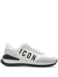logo-print sneakers Highlights - White - Front lace-up fastening - Round toe - Flat rubber sole Imported Composition Lining: Fabric 100%, Calf Leather 100% Outer: Fabric 100%, Calf Suede 100% Sole: Rubber 100%