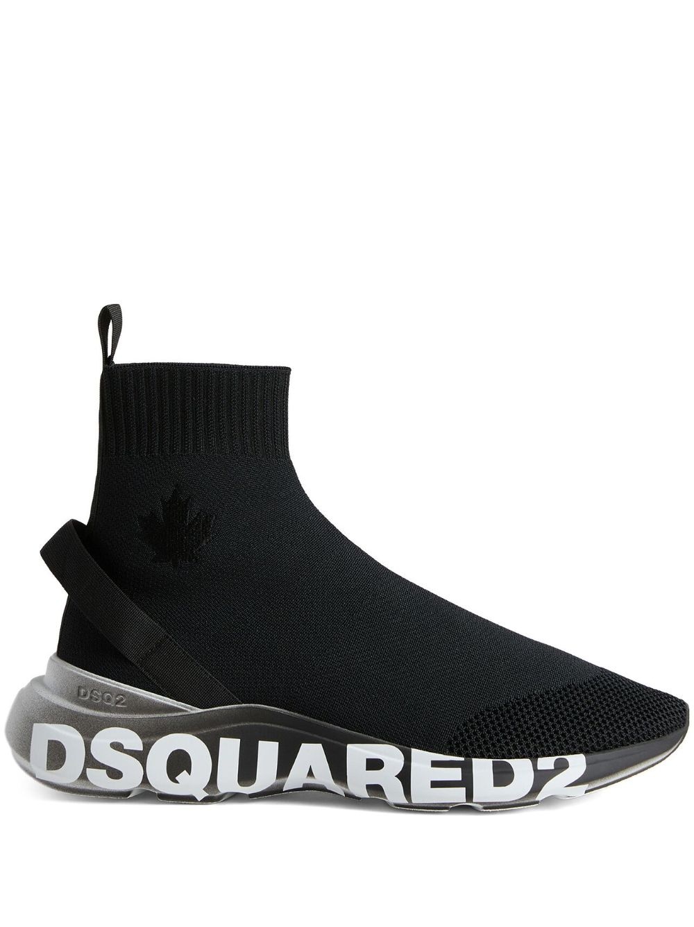 logo-print sock sneakers Highlights - Black/white - Recycled polyester blend - Logo at the sole - Slip-on style - Ankle-length - Pull-tab at the heel - Almond toe - Chunky rubber sole Made in Italy Composition Lining: Polyester 50%, Calf Leather 50% Outer: Recycled Polyester 70%, Lycra 20%, Elastane 10% Sole: Rubber 100% SIZE & FIT Measurement HEIGHT 5.51 in(14 cm) HEEL 1.57 in(4 cm) CIRCUMFERENCE 7.87 in(20 cm)
