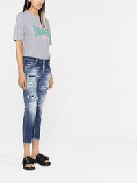 logo-print T-shirt Dsquared2 presents a casual street-style aesthetic with this short sleeve T-shirt for SS23. This relaxed silhouette is decorated with the label's logo print to the front, offering a branding-focused piece. Made in Italy Composition Cotton 88%, Viscose 12% SIZE & FIT Model measurements Height 5 ft 10 in(1.77 m) Bust/Chest 32.67 in(83 cm) Hips 35.43 in(90 cm) Waist 23.62 in(60 cm) FittingInformation This piece fits true to size. We recommend you get your regular size Cut for a loose fit Made with a mid-weight fabric Washing instructions Dry Clean Only