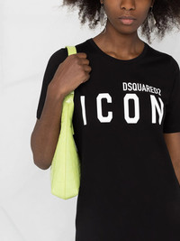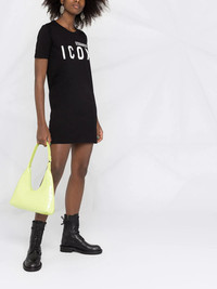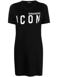 logo-print T-shirt dress With this logo T-shirt dress, Dsquared2 just wants to make sure your looks match your status. Get comfortable in its cotton composition and let the ‘icon’ print do all the talking. Live up to your reputation. Made in Italy Composition Cotton 100% SIZE & FIT Model measurements Height 5 ft 10 in(1.78 m) Bust/Chest 31.49 in(80 cm) Hips 37 in(94 cm) Waist 23.62 in(60 cm) FittingInformation This piece fits true to size. We recommend you get your regular size Cut for a slim fit Made with a mid-weight fabric Washing instructions Machine Wash