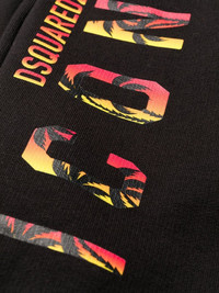 logo-print track pants A love of logomania is a Dsquared2 hallmark. These track pants state that branding ethos with a multicoloured logo print down the leg. Made in Italy Composition Lining: Cotton 100% Outer: Cotton 100% SIZE & FIT Model measurements Height 5 ft 10 in(1.77 m) Bust/Chest 31.49 in(80 cm) Hips 35.03 in(89 cm) Waist 23.22 in(59 cm) FittingInformation This piece fits true to size. We recommend you get your regular size Designed to be loose over the leg with a fitted waist and hem Made with a mid-weight fabric Washing instructions Machine Wash
