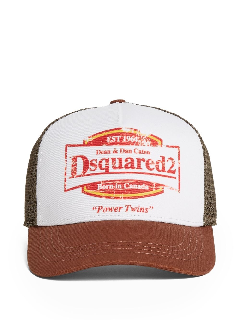 logo-print trucker cap Highlights - White and brown - Front logo print - Mesh back - Adjustable snap fastening Imported Composition Fabric 100%