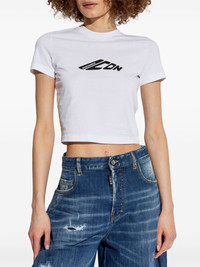 logo-printed cropped T-shirt Highlights - White - Cotton - Logo print to the front - Crew neck - Short sleeves - Cropped Made in Italy Composition Cotton 100%