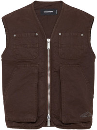 logo zip-up gilet Highlights - Brown - Cotton - Front zip fastening - Sleeveless - Two side slit pockets - Straight hem - Internal logo patch Made in Italy Composition Cotton 100%
