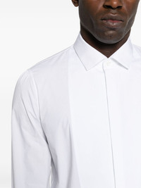 long-sleeve shirt Highlights - White - Stretch-cotton - Poplin texture - Classic collar - Long sleeves - Buttoned-cuff sleeves - High-low hem - Concealed front button fastening Made in Italy Composition Cotton 97%, Elastane 3% SIZE & FIT Model measurements Height 6 ft 0 in(1.84 m) Bust/Chest 35.82 in(91 cm) Hips 37 in(94 cm) Waist 28.34 in(72 cm) FittingInformation Designed for a slim fit, offering a comfortable fit that sits just away from the body The dart stitching adds structure and a closer fit in the torso of this piece Made from a midweight non-stretch fabric This piece fits true to size – those with broad shoulders may wish to take one size up Washing instructions Machine Wash
