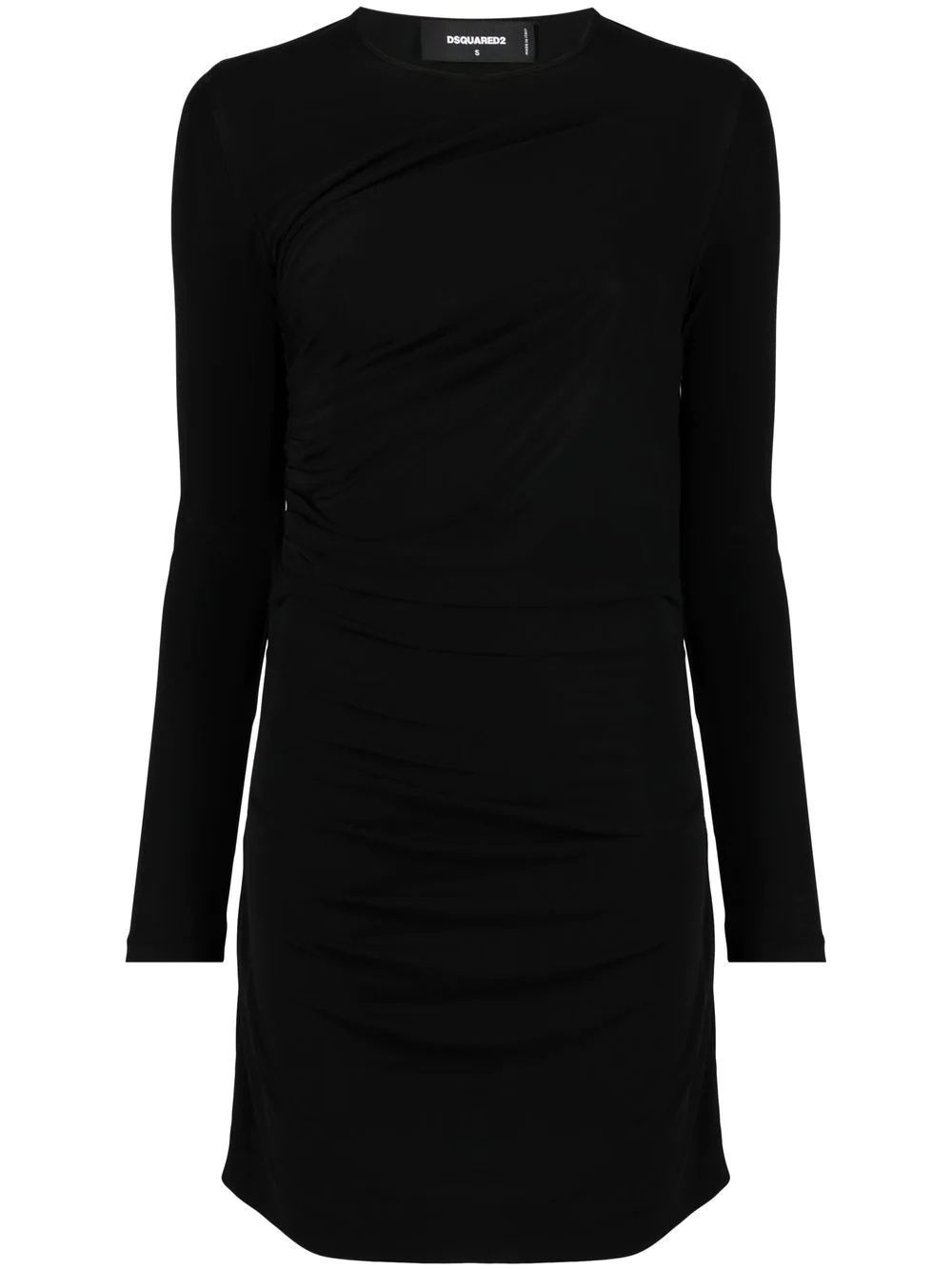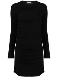 long-sleeved mini dress DSQUARED2 proves that it can also excel in minimal designs. In a tonal black design, this mini dress is defined by its ruched construction. Made in Italy Composition Viscose 100% SIZE & FIT Model measurements Height 5 ft 10 in(1.78 m) Bust/Chest 31.49 in(80 cm) Hips 35.43 in(90 cm) Waist 24.4 in(62 cm) FittingInformation This piece fits true to size. We recommend you get your regular size Cut for a slim fit Made with a mid-weight fabric Washing instructions Dry Clean Only