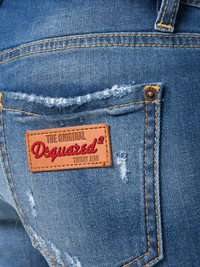 medium-waisted Twiggy jeans As well as presenting a collection of quirky styles and standout silhouettes, the Caten twins prove that they are also expert in fashioning timeless wardrobe staples. These medium-waisted Twiggy jeans are from the label's AW17 collection and have been crafted in Italy from a light blue cotton-blend. They feature a button and zip fly, belt loops, a five pocket design, whiskering at the thigh, distressed effects, a branded rear patch and a faded effect. Made in Italy Composition Lining: Polyester 65%, Cotton 35% Outer: Calf Leather 100%, Cotton 98%, Spandex/Elastane 2% SIZE & FIT Model measurements Height 5 ft 11 in(1.8 m) Bust/Chest 31.49 in(80 cm) Hips 35.82 in(91 cm) Waist 24.8 in(63 cm) Washing instructions Machine Wash