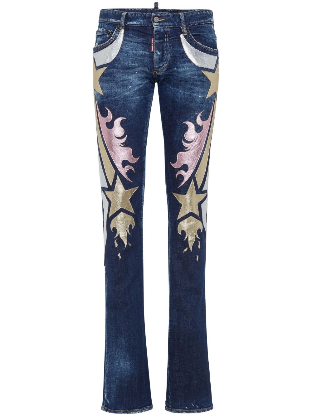 metallic-detailing flared jeans Highlights - Navy blue - Stretch-cotton - Denim - Metallic detailing - Concealed fly and button fastening - Belt loops - Classic five pockets - Flared hem Made in Italy Composition Outer: Cotton 98%, Spandex/Elastane 1% Lining: Polyester 65%, Cotton 35%