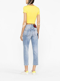 mid-rise cropped jeans Highlights - Light blue - Stretch-cotton - Washed denim - Whiskering effect - Logo patch to the rear - Belt loops - Concealed fly and button fastening - Classic five pockets - Cropped leg Made in Italy Composition Outer: Polyester 100%, Cotton 98%, Spandex/Elastane 2% Lining: Polyester 65%, Cotton 35% SIZE & FIT Model measurements Height 5 ft 10 in(1.77 m) Bust/Chest 32.67 in(83 cm) Hips 35.43 in(90 cm) Waist 23.62 in(60 cm) FittingInformation Designed for a slim fit, these jeans offer a close fit at the waist and sit just away from the leg Constructed from stretch denim, this piece offers a stretch fit with durability This piece fits true to size – take your usual size